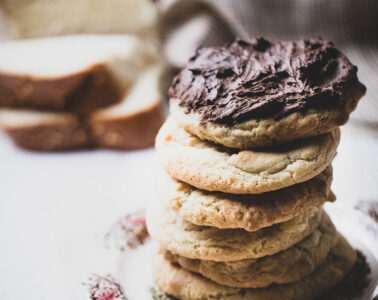 Soft cookies με γεύση τσουρέκι και frosting σοκολάτας