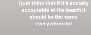 Η εικόνα της σχεδόν αμέσως άρχισε να σχολιάζεται και να μετατρέπεται σε meme. Με αφορμή ένα meme, λοιπόν, η Fox αποφάσισε να σχολιάσει τον χαμό, που έχει γίνει, μέσω ενός Instagram story και να γραψει, “Απλά πιστεύω ότι αν είναι κοινωνικά αποδεκτό στην παραλία, θα πρέπει το ίδιο να ισχύει παντού, lol”. Κι η αλήθεια είναι ότι δεν μπορούμε να πούμε ότι έχει άδικο.