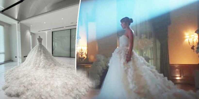 Το λευκό φόρεμα λοιπόν είναι τουλάχιστον εντυπωσιακό και μάλιστα στο φιλμάκι βλέπουμε και το διδυμάκι του, μια ακριβή ρέπλικα σε κόκκινο χρώμα. Τα δυο φορέματα επιμελήθηκε ο οίκος Nicole + Felicia Couture, σχεδιάζοντας αυτές τις custom made δημιουργίες που ολοφάνερα αποτελούν κομμάτια ραμμένα σύμφωνα με τις προδιαγραφές του Haute Couture.