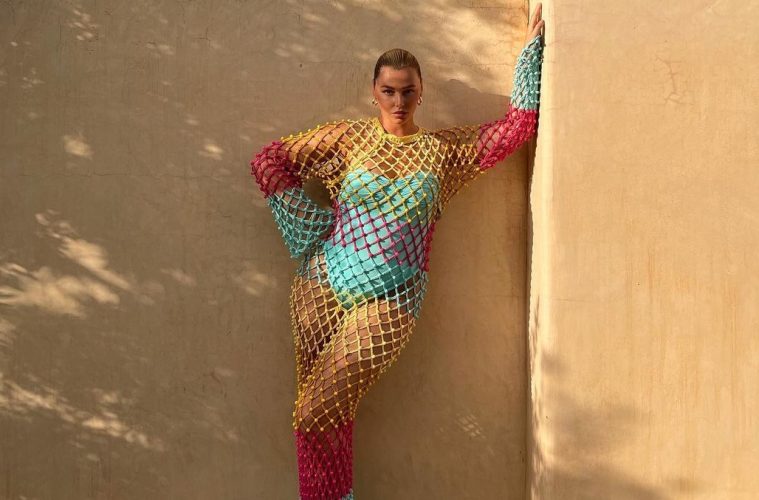 Φόρεμα με λεπτή πλέξη και πολύχρωμο μοτίβο