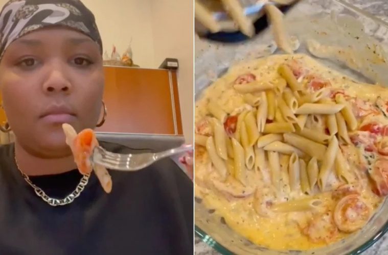 Χαρήκαμε ιδιαιτέρως όταν την είδαμε να δίνει το δικό της twist στην συνταγή που έχει κατακλίσει το TikTok (και όλα τα υπόλοιπα σόσιαλ) τις τελευταίες εβδομάδες, δηλαδή τα μακαρόνια με την φέτα και τα ντοματίνια στο φούρνο. Η εκδοχή της Lizzo ξεκινάει με ντοματίνια, , σκόρδο, βασιλικό, λάδι από κουκούτσι σταφυλιού (ναι, ούτε εγώ ήξερα ότι υπάρχει κάτι τέτοιο) και vegan κατσικίσιο τυρί. Στην συνέχεια προσθέτει μέλι και chili flakes πριν βάλει το ταψί στον φούρνο. Βράζει πένες από ρεβίθια, τα οποία είναι μία εναλλακτική λύση για τα μακαρόνια με περισσότερη πρωτεΐνη και φυτικές ίνες και voila. Έτοιμο το σημερινό γεύμα.