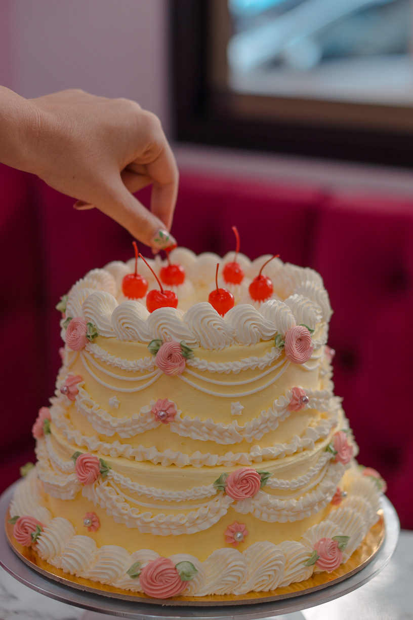 Kαι όταν λέμε τούρτες vintage, εννοούμε αυτές που βλέπουμε σε αμερικάνικα περιοδικά δεκαετίας του ’60, οι γεμάτες παστέλ χρώματα, κερασάκια και περίεργους φραμπαλάδες με σαντιγί. Εκμεταλλευόμενος τις επιρροές του από την ισπανική ζαχαροπλαστική κουλτούρα αλλά “καβαλώντας το κύμα” των παγκόσμιων trends του ινσταγκραμ, το οποίο ξεκίνησε να λατρεύει τις vintage τούρτες κατά την διάρκεια της πανδημίας (όπως έχουμε αναλύσει εδώ), ο Μάριος βρέθηκε ξαφνικά με δεκάδες παραγγελίες ατόμων που συγκινήθηκαν από την νοσταλγική του προσέγγιση σε ένα τόσο κλασικό γλυκό και ήθελαν την δική τους εκδοχή.