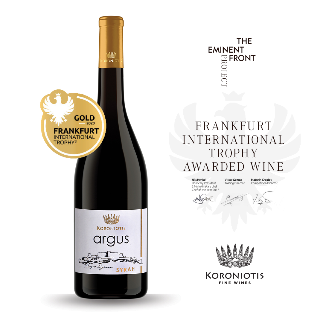 Το argus syrah είναι το premium κρασί της οινοποιίας από τα αμπέλια της ορεινής Αιγιαλείας. Χρειάστηκαν επτά χρόνια για την εμφάνιση του χρυσού “Argus” Syrah το 2018, που βρίσκεται πολύ συχνά στις λίστες με τα κορυφαία ελληνικά κρασιά. Με χρώμα εντυπωσιακό βαθύ κόκκινο, ένα δυνατό και στιβαρό κρασί, που στέκεται άψογα δίπλα στο κοκορέτσι και το αρνί του Πάσχα.