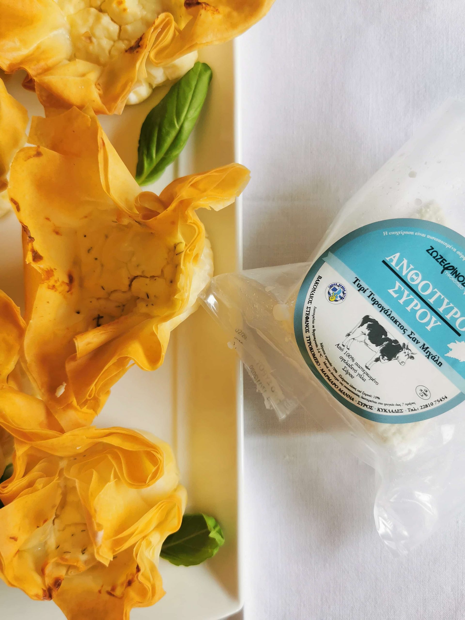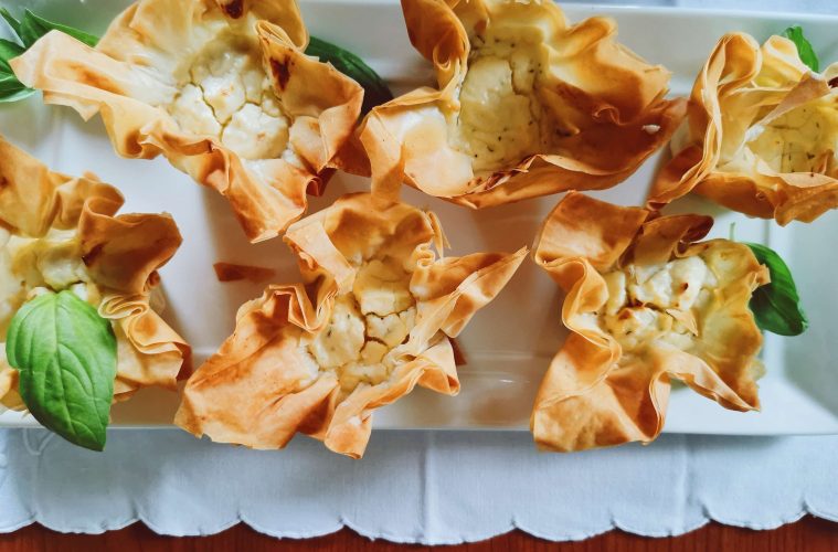 Χτυπάμε μαζί τα τυριά, το γιαούρτι, το αβγό και τον άνηθο, ενώ προσθέτουμε αλάτι και πιπέρι σύμφωνα με τα γούστα μας. Τοποθετούμε τρία φύλλα το ένα πάνω στο άλλο λαδώνοντας ελαφρά με το πινέλο μας. Κόβουμε σε κομμάτια 9 επί 9 εκατοστά. Το τέταρτο φύλλο το διπλώνουμε στα τρία, λαδώνουμε και κόβουμε με τον ίδιο τρόπο. Τοποθετούμε χάρτινες θήκες για cup cakes σε ένα ταψάκι για cup cakes και στρώνουμε στο κάθε ένα τα φύλλα μας ανά τρία. Ύστερα τα γεμίζουμε με το μείγμα τυριών, στήνοντας ωραία τα κομμάτια φύλλου που περισσεύουν. Ψήνουμε σε προθερμασμένο φούρνο στους 170ο C για είκοσι λεπτά ή ώσπου να ροδίσουν.