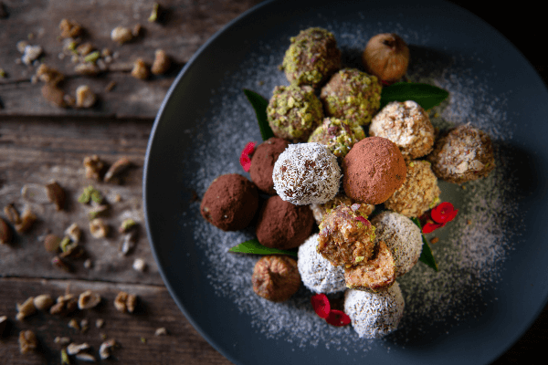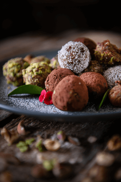 Τα προτεινόμενα τρουφάκια από σύκα και ξηρούς καρπούς παραλαμβάνουν την γλυκιά σκυτάλη τους από κάποια παραδοσιακά γλυκίσματα με βάση τα αποξηραμένα φρούτα, το μέλι, καρπούς, σουσάμι και γλυκό κρασί, σε διάφορους συνδυασμούς και σχήματα, όπως για παράδειγμα το γνωστό και αγαπημένο μας παστέλι. Ο Πτωχοπρόδρομος, ο Βυζαντινός ποιητής και συγγραφέας, που συνέταξε τον 12ο αιώνα σε δημώδη γλώσσα και σε δεκαπεντασύλλαβους πολιτικούς στίχους τέσσερα σατυρικά και επαιτικά ποιήματα, που είναι γνωστά με το γενικό όνομα Πτωχοπροδρομικά, στο Δ’ ποίημα αναφέρει μεταξύ άλλων: «Γαρύφαλλο, κανέλα, «και μέλιν εκ το ακάπνιν», σταφιδίτσες, ξερά σύκα μαζί με χουρμάδες, καρύδια, καρυδάτο γλύκισμα ολίγον και κυδωνάτο με την χύτρα», ενώ στο Γ΄ποίημα γράφει: «Τα καρυδάτα αρχόντισσες, εδώ τα σησαμάτα». Ο Αθήναιος στους Δειπνοσοφιστές αναφέρει επίσης όλα αυτά τα προϊόντα και πολλά άλλα, κάνει δε λόγο και για σφαιρικού σχήματος γλυκίσματα, τις σησαμίδες: «Σησαμίδες είναι γλυκίσματα με σφαιρικό σχήμα καμωμένα από μέλι, φρυγμένα σουσάμια και λάδι».