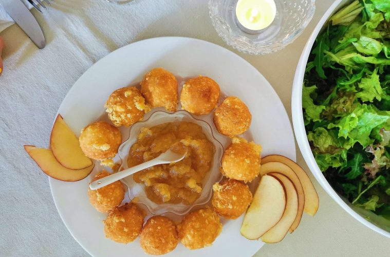Σερβίρουμε τις τυροκροκέτες μας παρέα με την σάλτσα μήλου και απολαμβάνουμε!