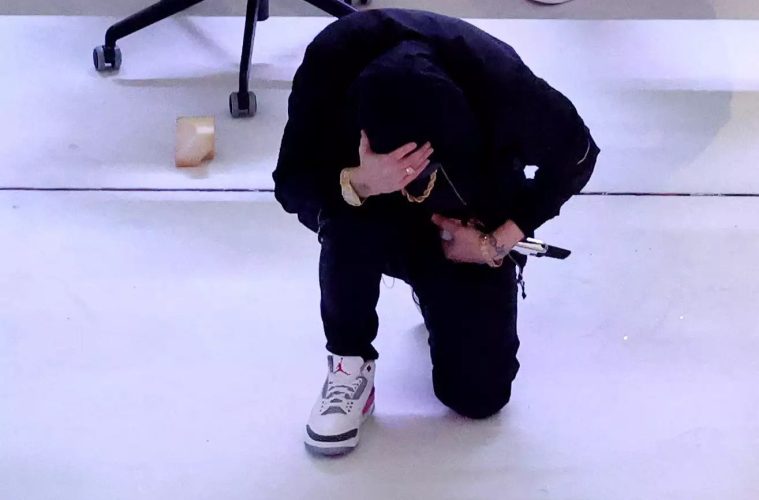 To Super Bowl είναι σίγουρα το μεγαλύτερο αθλητικό γεγονός της Αμερικής και πολλοί υποστηρίζουν παγκοσμίως. Ένα από τα πράγματα που το κάνουν τόσο εμβληματικό, εκτός του ίδιου του παιχνιδιού, είναι η συναυλία ανάμεσα στα δύο ημίχρονα, με τα πιο διάσημα ονόματα της μουσικής να ανεβαίνουν στην σκηνή και να ερμηνεύουν τις μεγαλύτερες επιτυχίες τους. Φέτος, ένας από τους καλλιτέχνες που εμφανίστηκε ήταν ο Eminem, o οποίος αφού ερμήνευσε ένα από τα πιο γνωστά του κομμάτια (με το οποίο έχει κερδίσει ένα Oscar και ένα Grammy) “Lose Yourself”, γονάτισε μπροστά στο κοινό της αρένας και κράτησε το κεφάλι του στο χέρι του.