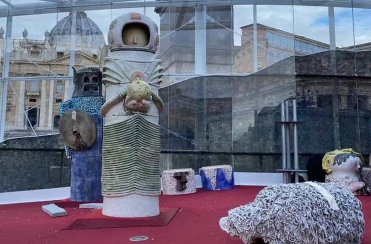 Το Βατικανό κάθε χρόνο τοποθετεί στην πλατεία ένα διαφορετικό έργο τέχνης που αναπαριστά τη γέννηση του Χριστού. Συνήθως κάποιο που έχει δωρηθεί από καλλιτέχνες ή πόλεις. Δεν είναι, μάλιστα, σπάνιο το εκάστοτε έργο να είναι αμφιλεγόμενο, μιας και τα περισσότερα δεν μένουν 100% πιστά στις κλασικές εικόνες. Συν του ότι το Βατικανό επιλέγει έργα, που ακολουθούν την ιταλική καλλιτεχνική παράδοση, που θέλει στις αναπαραστάσεις γνωστών ή πραγματικών σκηνών να προστίθενται νέα στοιχεία. Στοιχεία που αντικατοπτρίζουν τη σύγχρονη εποχή. Είναι χαρακτηριστικό ότι σε παλιότερο έργο έχουμε δει μία βάρκα, ως σύμβολο των παθών των προσφύγων, ή έναν άνθρωπο που επισκέπτεται έναν φυλακισμένο, ως σύμβολο της ελεημοσύνης.