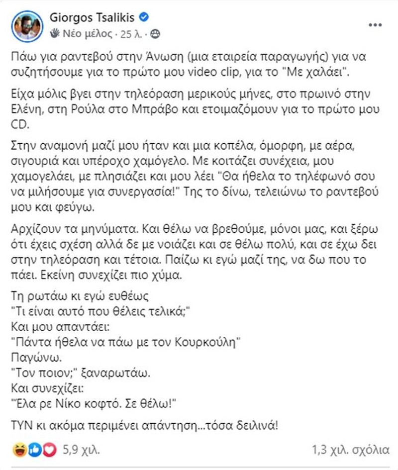 Οι ιστορίες από την ομάδα του Facebook Thank you, Next μάς έχουν χαρίσει πολύ γέλιο. Όταν συναντάμε ανάμεσά τους και γνωστά μας πρόσωπα, γελάμε ένα “τσακ” περισσότερο. Κι αυτό συνέβη όταν είδαμε το όνομα του Γιώργου Τσαλίκη ανάμεσα στις TYN δημοσιεύσεις.