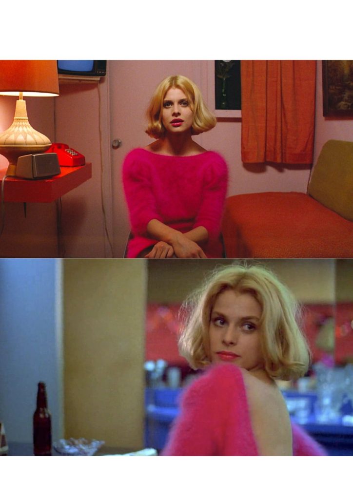 Η ιστορία της Jane στο Paris Texas του Wim Wenders είναι πικρή, καθώς κατάφερε να αγαπήσει αλλά τελικά δεν ανέχτηκε την “δύσκολη” αγάπη του συντρόφου της. Στην πραγματικά iconic φωτογραφία της σκηνής, φαίνεται ξεκάθαρα η απομόνωση και η νοσταλγία που νιώθει η Jane, και έτσι το φόρεμα αυτό έρχεται σε αντιδιαστολή με την περιρέουσα ατμόσφαιρα. Ο λόγος δεν είναι άλλος από το γεγονός ότι μέσα στην Jane υπάρχει ακόμα ζωντάνια και ανάγκη για έρωτα και ζωή κάτι που υπογραμμίζεται από τον πληθωρισμό του φορέματος και το γεμάτο ένταση φουξ χρώμα του.