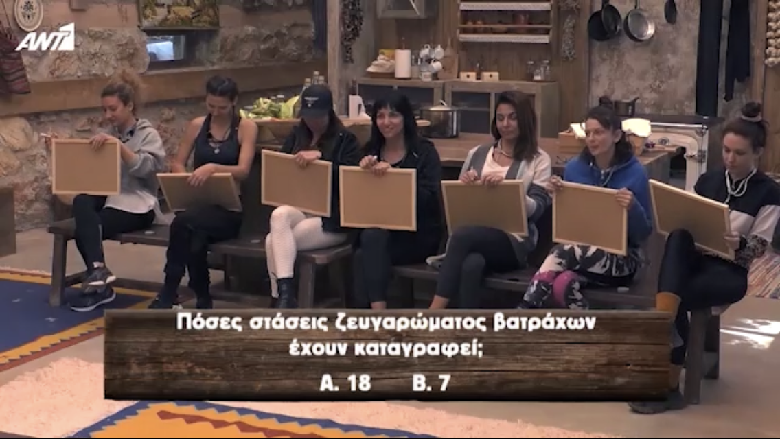 ◾️Μία από τις δοκιμασίες απαιτεί εγκυκλοπαιδικές γνώσεις. Οι ερωτήσεις στις οποίες κλήθηκαν να απαντήσουν οι διαγωνιζόμενοι ήταν οι εξής: Από τι πέθανε η μακροβιότερη κότα, πόσο διαρκεί ο οργασμός των προβάτων, πόσες είναι οι στάσεις ζευγαρώματος των βατράχων.