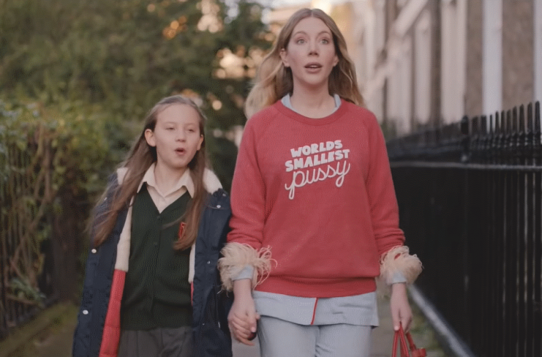 Ίσως το πιο iconic outfit από όλα. Ναι, συνόδεψε την κόρη της στο σχολείο φορώντας φούτερ που γράφει “World’s Smallest Pussy” και ΝΑΙ το συνδύασε με ένα Prada co-ord σύνολο με πούπουλα. Και το καλυτερο της υπόθεσης; Το φούτερ είναι ρούχο που ανήκει όντως στην Katherine Ryan.