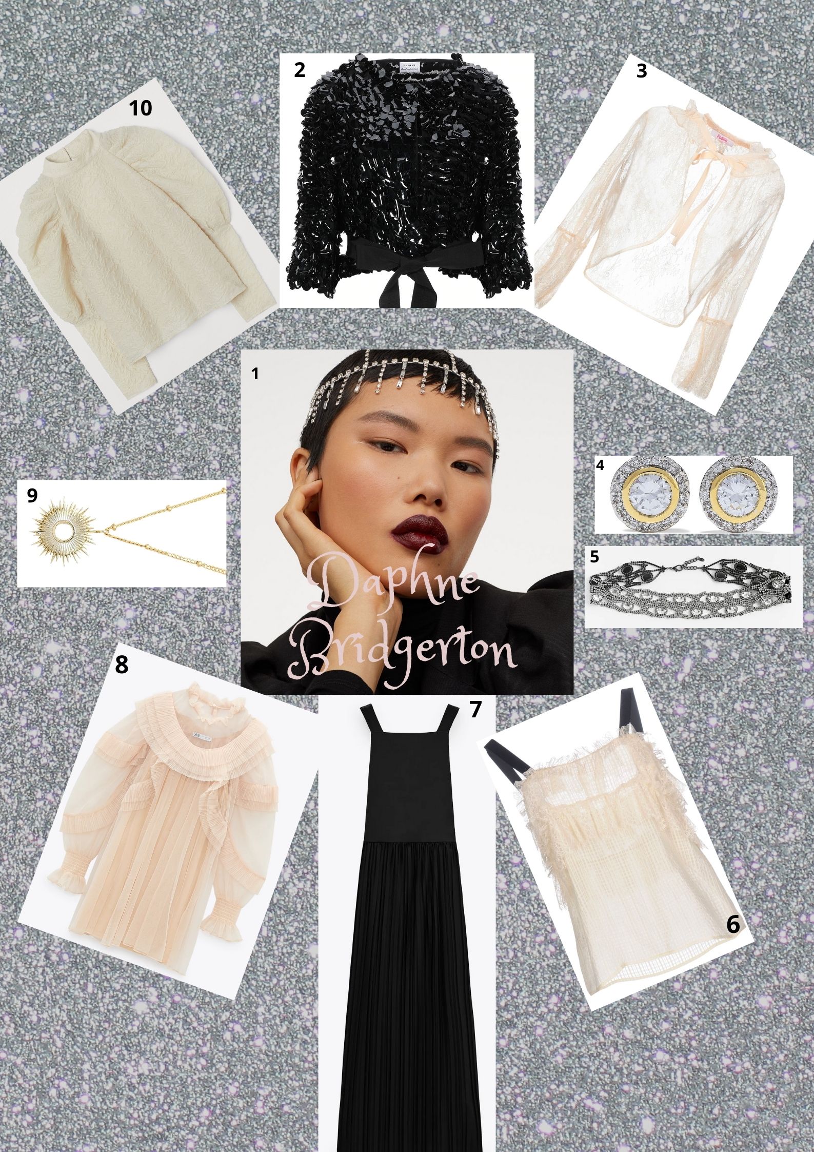 Ταυτόχρονα βλέπουμε κοινωνικό σχόλιο, συνυφασμένο μέσα στην πλοκή, τόσο για την φυλετική ποικιλομορφία -ή για την έλλειψη αυτής- όσο και για την απαράδεκτη θέση της γυναίκας και την σεξουαλική ταυτότητα. Πέρα από την πλοκή, η φωτογραφία, η σκηνογραφία, η φανταστικά πρωτότυπη μουσική και το σενάριο είναι κατά τη γνώμη μου άψογα. Και φυσικά σε μια τέτοια σειρά δεν θα μπορούσαν να λείπουν υπέροχα εξαίσια φαντασμαγορικά -μάντεψε- κοστούμια! Δε χόρταινε το μάτι μας να βλέπουμε τα σατέν και τα μεταξωτά, τα βελούδα και τις ποπλίνες, τα τούλια και τις τουτού. Υπέροχες τουαλέτες σε όλα τα χρώματα του ουράνιου τόξου και ευφάνταστα κοστούμια για τα αγόρια της σειράς. Και όσο και αν σε στιγμές θα το θέλαμε δεν μπορούμε πια να ντυθούμε ακριβώς έτσι, δεν ζούμε στο 1820 ούτε έχουμε από τρεις προσωπικές μοδίστρες ο καθένας, μπορούμε ωστόσο να εμπνευστούμε. Και αυτό κάναμε. Παρακάτω λοιπόν θα βρεις ρούχα εμπνευσμένα από τρεις βασικούς χαρακτήρες της σειράς και πως να τα προσαρμόσεις στο σήμερα!