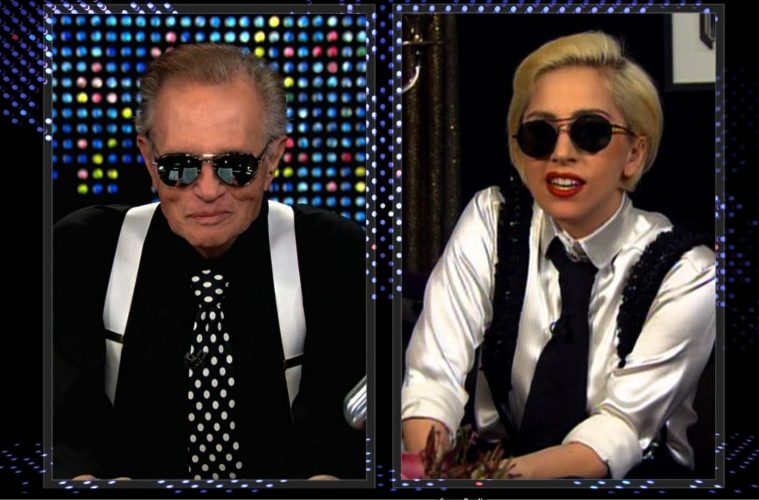 H Lady Gaga, γνωστή για τα τρελά της ντυσίματα, έκανε την έκπληξη όταν πήγε ως καλεσμένη στην εκπομπή του Λάρι Κινγκ. Ντύθηκε Λάρι Κινγκ με το πουκάμισο, την γραβάτα και ένα ζευγάρι φανταχτερές τιράντες. Αποκάλυψε κομμάτια της προσωπικής της ζωής που δεν ήταν μέχρι τότε γνωστά, όπως ότι είχε βρεθεί θετική στην ασθένεια Λύκος από την οποία είχε πεθάνει η θεία της. Είπε ότι δεν είχε ακόμα κανένα σύμπτωμα της ασθένειας, αλλά θα έπρεπε να προσέχει πολύ την υγεία της στο εξής. Η συνέντευξη μεταξύ του Κινγκ και της Gaga είναι ένα κλασσικό δείγμα της βασικής ικανότητας του Λάρι Κινγκ να κάνει τους διάσημους να του αποκαλύπτουν πράγματα για την ζωή τους που δεν θα τα έλεγαν σε άλλες συνεντεύξεις.