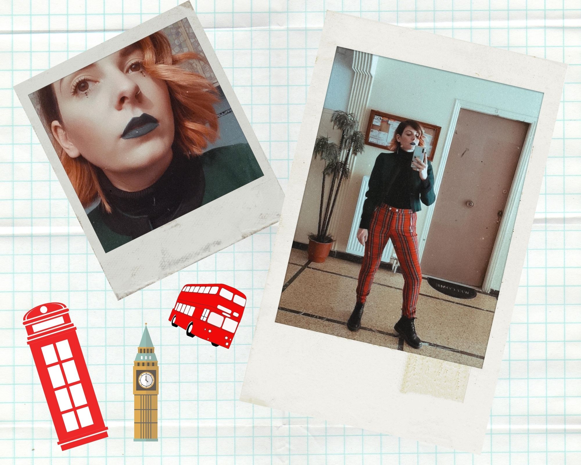 Πια ήμουν πολύ engaged με το challenge, ξύπνησα με πολλή όρεξη και αποφάσισα ότι θέλω να μοιραστώ αυτό το φανταστικό τσόχινο πράσινο σακάκι με τον κόσμο. Δανείστηκα λίγα punk στοιχεία, όπως το καρό παντελόνι και τις Martens μου, και επένδυσα και πάλι στο μαύρο ζιβάγκο που είναι κομμάτι πασπαρτού. Παραδέχομαι ότι δεν άντεξα όλο το οκτάωρο με τις Martens στο σπίτι. Εντελώς τρελούλα πλέον με το make up, φόρεσα και το πράσινο κραγιόν μου για πρώτη φορά φέτος και έκανα και τις τελίτσες μου κάτω από τα μάτια.