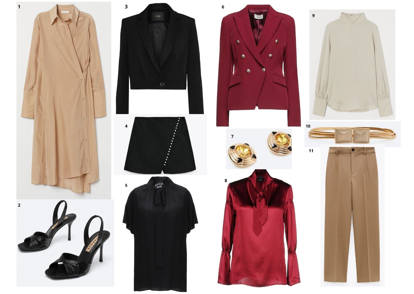 - ΦΟΡΕΜΑ H&M, 2. ΣΑΝΔΑΛΙ UTERQUE, 3. ΣΑΚΑΚΙ MAJE, YOOX, 4. ΦΟΥΣΤΑ ZARA, 5. ΤΟΠ MOSCHINO, YOOX, 6. ΣΑΚΑΚΙ VICOLO, YOOX, 7. ΣΚΟΥΛΑΡΙΚΙΑ UTERQUE, 8. ΠΟΥΚΑΜΙΣΟ PINKO, YOOX, 9. ΠΟΥΚΑΜΙΣΟ H&M, 10. ΖΩΝΗ UTERQUE, 11. ΠΑΝΤΕΛΟΝΙ ZARA