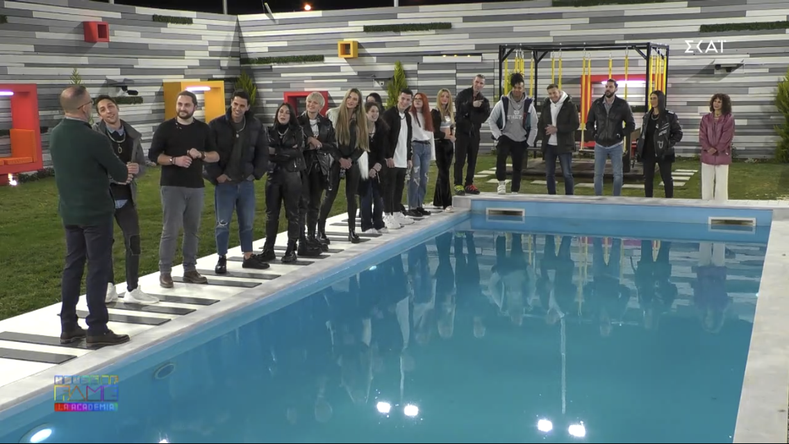 ▪️Όπως συμβαίνει σε κάθε ριάλιτι εγκλεισμού, η γκλαμουριά ταυτίζεται με την πισίνα. Γύρω από το γαλαζοπράσινο νερό της γίνονται οι μεγάλες συζητήσεις και αυτό το γνωρίζουν όλοι, εκτός από τους προβολείς που ούτε ένας δεν φώτιζε τον δάσκαλό Μεταξόπουλο καθώς υποδεχόταν τους μαθητές του.
