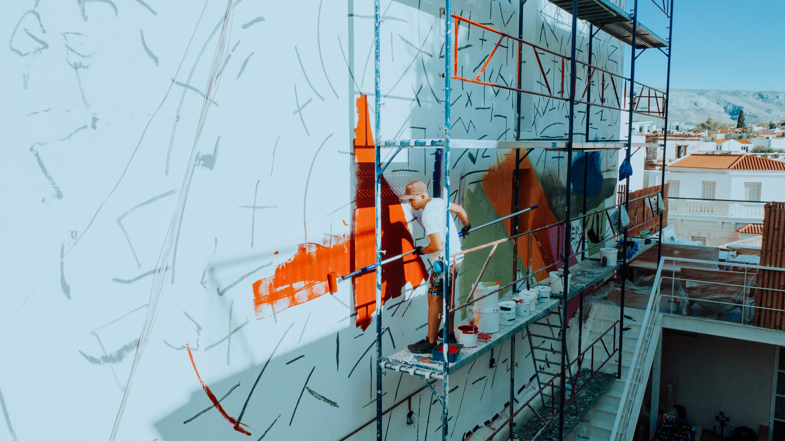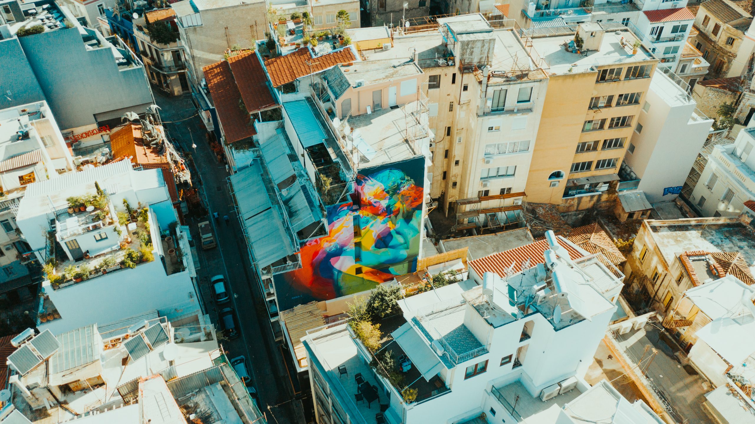 Ο Γεράσιμος είναι τελειόφοιτος στην Α.Σ.Κ.Τ και το χαρακτηριστικό γνώρισμα των έργων του είναι η έντονη χρωματική παλέτα και δυνατές φόρμες που δίνουν μια ατέρμονη κίνηση στο σχέδιο του. “Επικοινωνήσαμε τον Σεπτέμβριο του 2020 με σκοπό να παραδώσουμε το έργο τέλη Οκτώβρη με αρχές Νοέμβρη. Φοβόμασταν ενδεχόμενη επιβολή lockdown για την αντιμετώπιση της COVID-19, οπότε έπρεπε να βιαστούμε.Σε πολύ δύσκολες εποχές, δεν χάσαμε τη χαρά μας και την όρεξη για δημιουργία και νέες περιπέτειες. Θέλαμε έναν τοίχο με χρώμα, θετική πνοή στην μουντή Αθήνα με θέμα την αγάπη, την στοργή , την πιο σημαντική ενέργεια στον πλανήτη”, αναφέρει ο Γιώργος για την αρχή της εκτέλεσης του πολύ φιλόδοξου mural. Έπειτα από δοκιμές, ζυμώσεις και brainstorming με τον καλλιτέχνη κατέληξαν ότι η τοιχογραφία οφείλει να έχει ένα ισχυρό αθηναϊκό στοιχείο, εμπνευσμένο από την αρχαία Ελλάδα, μιας και βρίσκεται 500 μέτρα από την Ακρόπολη. Αυτό αποτέλεσε ένα μεγάλο στοίχημα για τον GERA1, τα έργα του οποίου περιλαμβάνουν ρεαλιστικές απεικονίσεις.