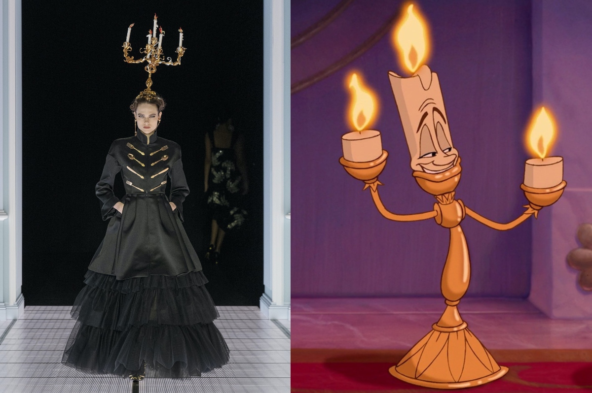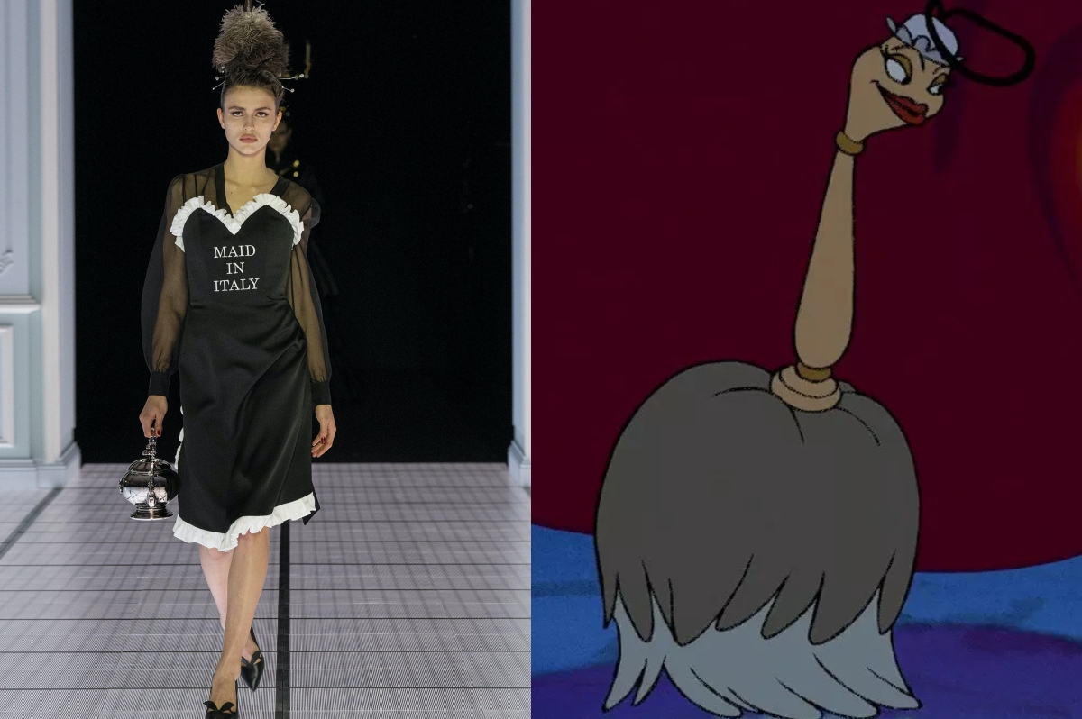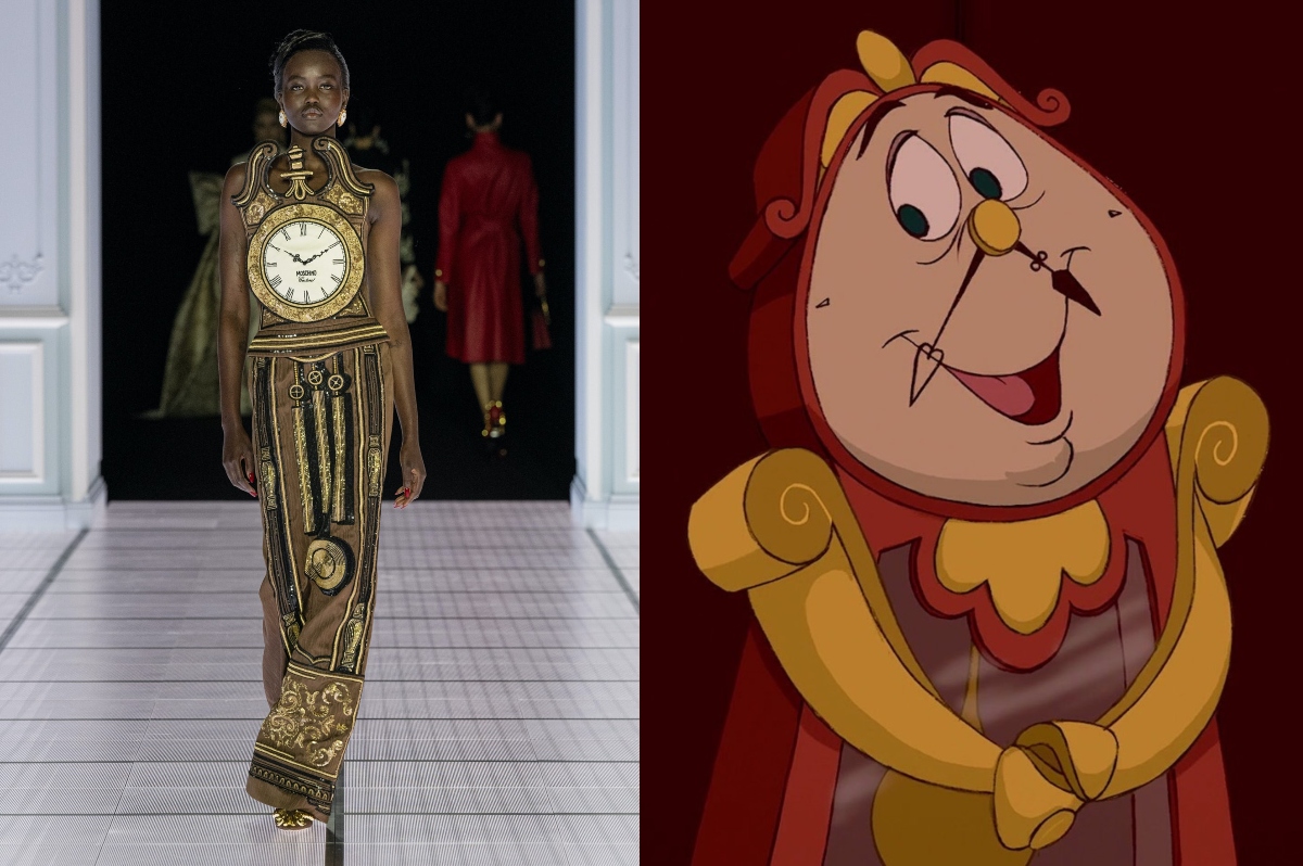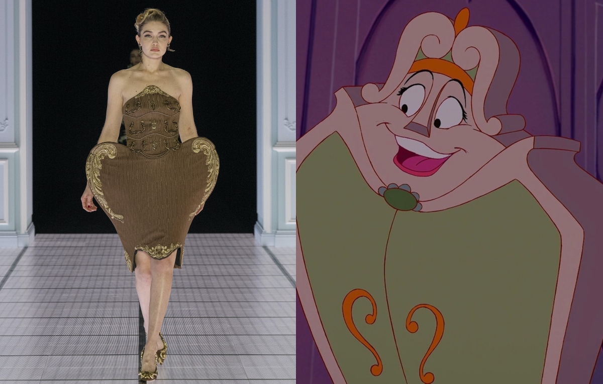 Ο Moschino παρουσίασε εκεί τη συλλογή για τη σεζόν Φθινόπωρο/Χειμώνας 2022. Στο επίκεντρο αρκετών looks βρίσκονταν τα έπιπλα, που είχαν μετατραπεί σε ρούχα. Ορισμένα, όμως, δεν σταμάτησαν να μάς θυμίζουν κάτι. Τι ήταν τελικά αυτό; Ο κόσμος του Beauty and the Beast, με τουλάχιστον τέσσερα σύνολα να μοιάζουν με άμεσες αναφορές στην ταινία της Disney. Συγκεκριμένα, είδαμε σύνολα που μάς θύμισαν τον Λουμιέρ, τον Τικιτάκα, την Μαντάμ Γκαρνταρόμπα και τη Φιφί. Μάλιστα, με το σύνολο, που παραπέμπει στην τελευταία, είδαμε να περπατάει στο Μιλάνο η Gigi Hadid.